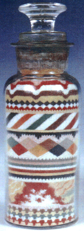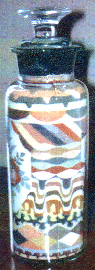 An early sandbottle. Front: "L.F." Back: Geometric. |