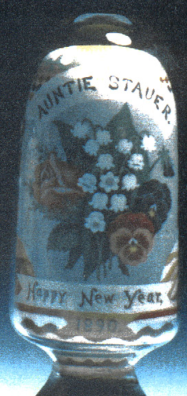 Front: Eagle with flag. Back: Floral. "AUNTIE STAUER / Happy New Year / 1890. Owned by Marion H. Fischer, Wilmette, Illinois. |