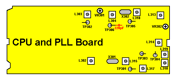 Connect Oscilloscope to Output Terminal for VCO. Adjust L310 for maximum at 29.000MHz. Adjust L319 for maximum at 28.500MHz. |