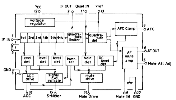 6. Signal meter drive output proportional to the input signal strength in dB (suitable to control multiplex IC LA3373).