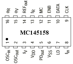 The MC1451582 has a fully programmable 14bit reference counter, as well as fully programmable ÷ N and ÷ A counters. The counters are programmed serially through a common data input and latched into the appropriate counter latch, according to the last data bit (control bit) entered.
