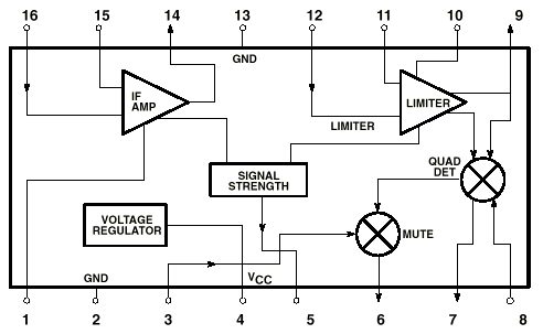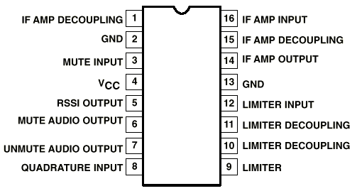 &127; Excellent sensitivity: 1.5mV across input pins (0.22mV into 50W matching network) for 12dB SINAD (Signal to Noise and Distortion ratio) at 455kHz