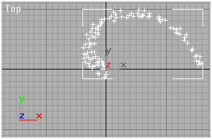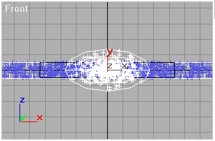 - В окне проекции Front уменьшите масштаб эмиттера объекта