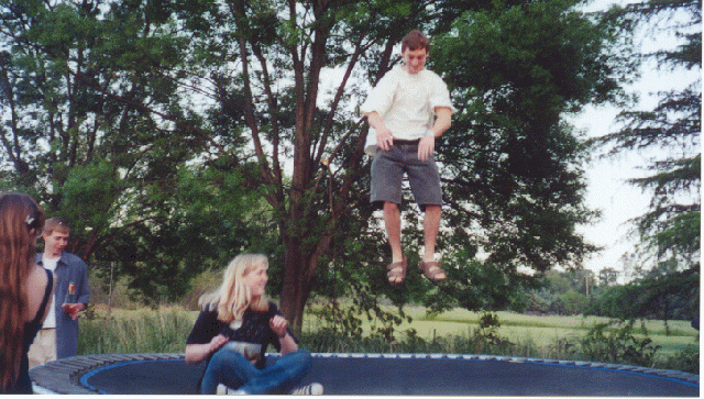 Various folks (me, Evan, Jessica, Mike) around Remington's huge-ass tramp.