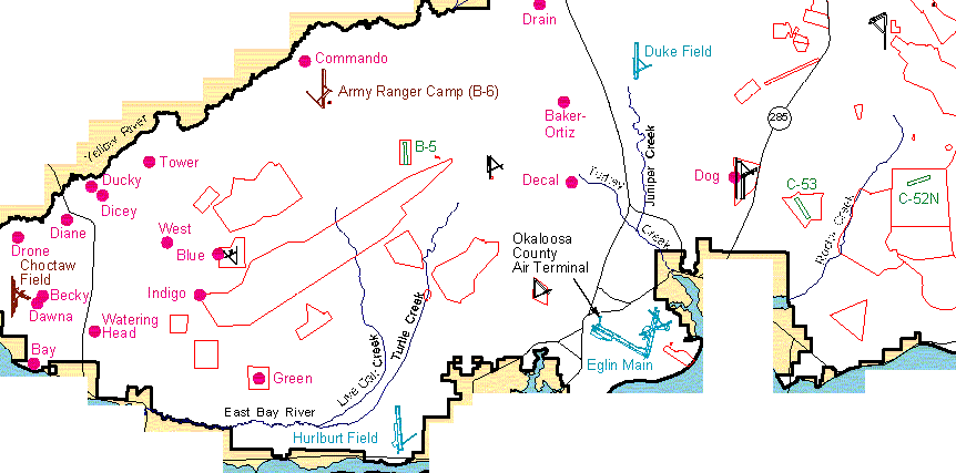 Other Eglin auxiliary airfields & the gunnery ranges were also shown.