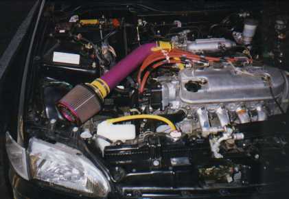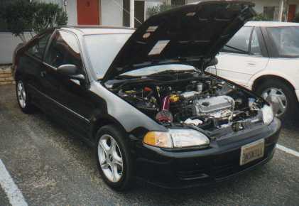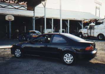 Andy's car has been through quite a bit. Andy bought the car new in late '95 with the stock DX wheels. The next summer he bought the Primax rims that are currently on my car. The summer after that he found a deal on some GSR rims which made his car look really nice, especially after he lowered it. However, those rims were stolen which is why you see the EX wheels in this picture. Modifications done to the car included: RS Akimoto intake, Dynomax exhaust, DC Sports ceramic coated header, Nology HotWires, full red taillights, clear turn signals, and Tenzo lowering springs. Although I hadn't heard of the springs before I would recommend them because they provided a ride very similar to stock.