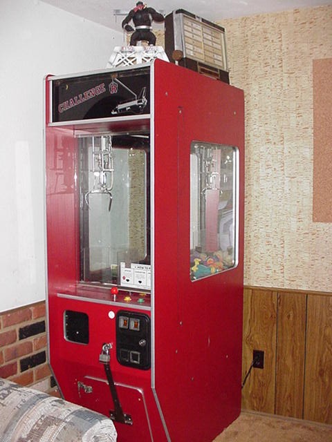 Challenger Claw Machine This machine looks good and works well. The claw makes lots of noise when moving. My daughter had a sleep over and the girls cleaned out all the toys. We placed prize bags and snack bags in it but had to attach small balloons to the bags or the claw would not pick them up.