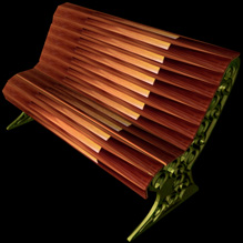 4. Now make sure to make a new layer. Take the rectangular marquee tool and make squares of the same size that run along the top part of the side of the bench, where the boards would be. Make sure to leave a little bit of space between each rectangle. 5. Hide all of the other layers except for the rectangles and export them as a pict/bmp. Then hide that layer and show all of the others and export that as a pict/bmp. Open up your 3D program and import the side. Extrude it a little bit like seen in the picture up at the top. Make two of them and add a texture. Next, import the squares and extrude them across the length of the two sides. It might be a good idea to make them a little bit longer. Then, you should have made a little bit of spaces between them, make a bevel for the squares to round them off a little bit and so there is almost no spaces left. Add a texture (The texture I used is the same wood texture availible in the photo section of the textures. Your done, isn't it pretty? If you have a tip you want me to post or want to know how to do something then please send it to me at car__s@mailcity.com |