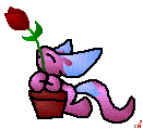 The crimson one cocks its head,then speaks up."Hello,I'm Sierra,a Darkness female Melcey.If you're wondering why this place is covered in dew,it's well,natural.I mean,I live practically "in" a fountain."You nod."Her crimson face turns even redder."I'm mated to Heichenel and in his pack, The Pack of the Chaotic Moon.He's very kind and polite,once you get to know him."Again,you nod,this time smiling.She steps aside, allowing the blue Melcey to introduce him or her self.His voice is very soft,but clear."Hello,my name is Sienna"-at this point he shoots a sideways glance/grin at Sierra-"I'm a male water and single." Suddenly,two lavender forms flap down,settling in front of you.
