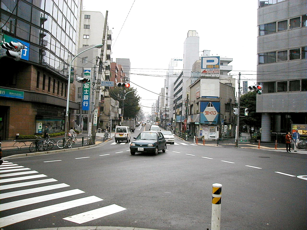 5. About 50 meter you should now reached the intersection. Take the crossing on your left, walk toward Fuji Bank, and go stright.