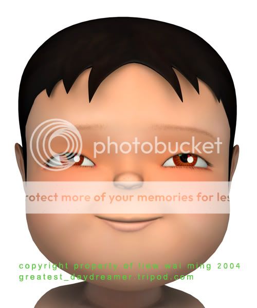 i ve always wanted a small-eyed yet cute character of him. i also see him as the character the audience empathize with in the short. however, i find korkor have become more appealing with his big dovey eyes, sorta outshine him in the looks department. i think i compromised a bit by giving didi bigger eyes than i intended. :: daydreamer 3/19/2004 03:17:00 PM [+]
