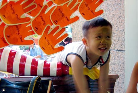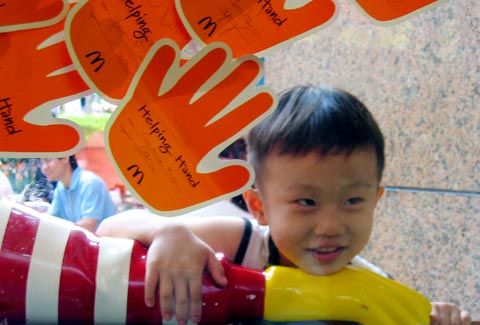 my sis-in-law always has unusual charisma with children. a playful boy started making funny faces to her outside the window of macdonald.