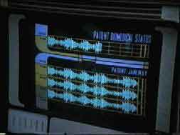 Every Hospital needs beds, and Highlander is equipped with the latest state of the art diagnostic bio beds. While the patient rest comfortably in the biobed, unobtrusive biological sensors continually measure their status This ever changing information is reported in a diagnostic display at the head of the bed. Patient status information can also be fed to tricorders, remote stations in the ship and the sickbays's main diagnostic display |