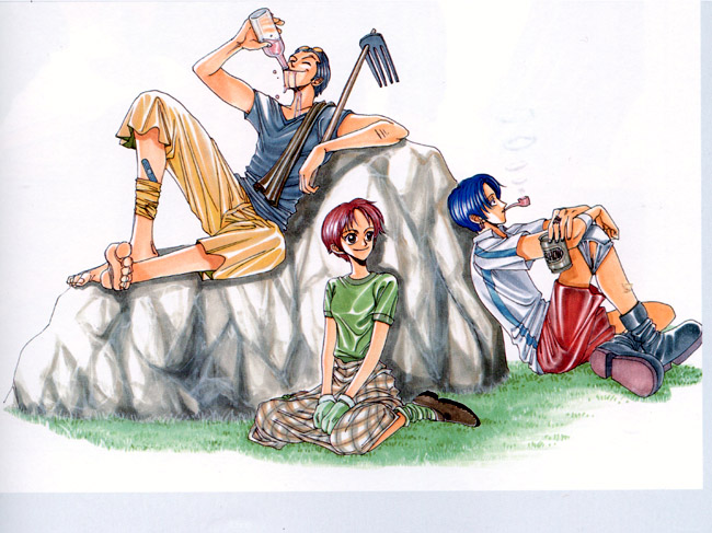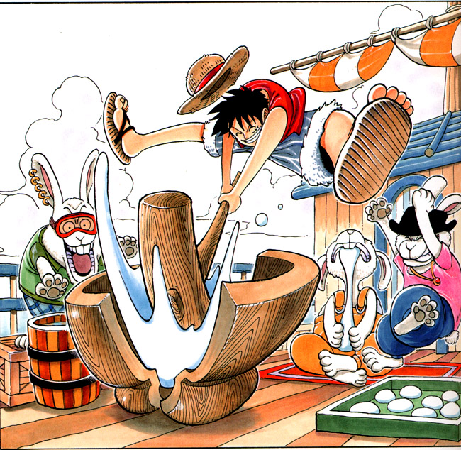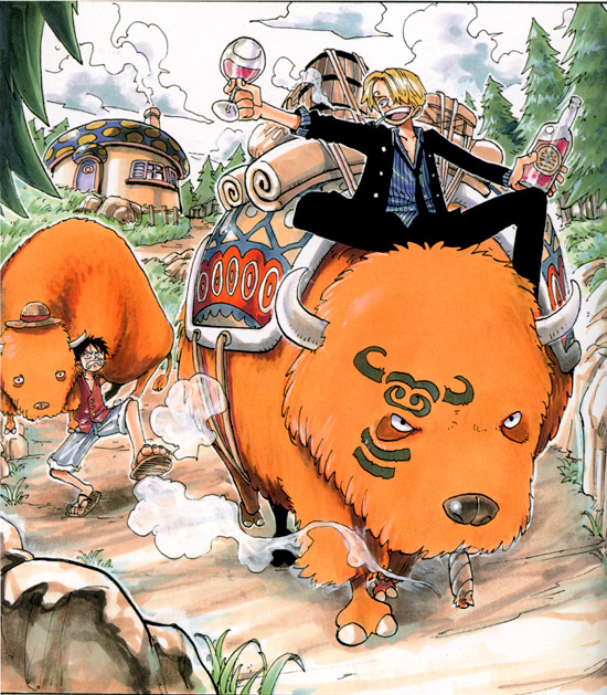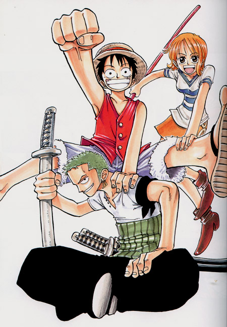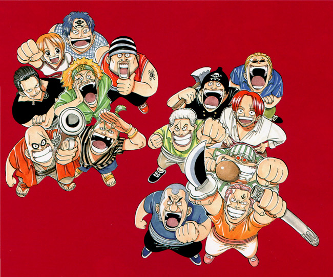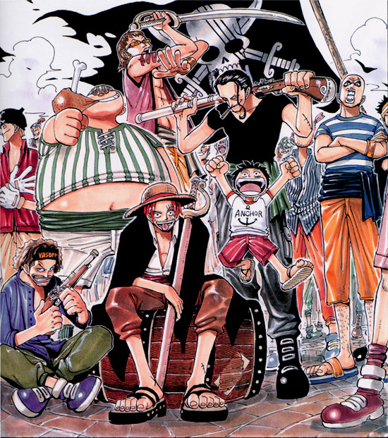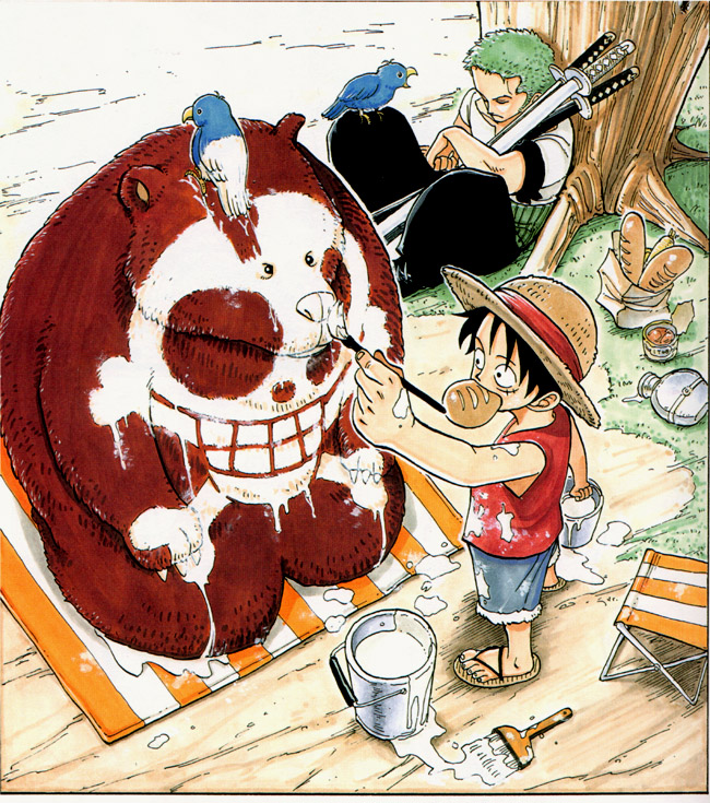 3: Shanks and his crew 4: Luffy, Zoro and A Very Patient Bear |