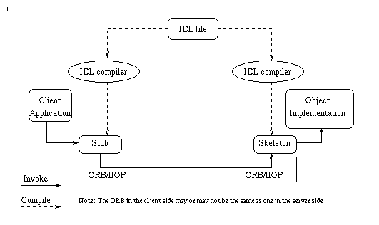 CORBA is only a specification. To build up a CORBA compliant application, one usually requires a software package which provides an ORB and an IDL compiler. The ORB supplies a framework which facilitates object communications and the IDL compiler takes the IDL input and generates appropriate source code in a given programming language such as C++.