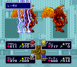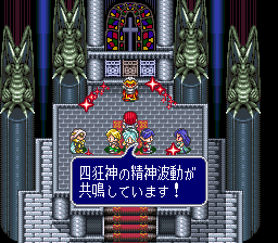 撰寫人:klonoa〈2002/1/22〉 說到TAITO的RPG,大家大概都會想到大貝獸物語系列吧,不過其實小弟個人認為,如果要說到當家招牌的RPG,那麼就非四狂神戰記莫屬。但是呢,小弟第一次玩四狂神戰記卻是在寫這篇文章的時候〈爆〉,遊戲開始之後,不知道為什麼,小弟的手就停不下來了,遊戲的風格滿吸引小弟我的,比較值得一提的就是他的戰鬥系統,戰鬥系統如上面的抓圖所示,有點類似DQ系列的戰鬥,不過不同點記就是在四狂神戰記中可以看到主角們,如果受到攻擊例如魔法攻擊,會直接打在主角的圖示上,戰鬥的節奏十分的明快,配上熱血的戰鬥音樂,啊,又是一款小弟從前沒有玩過的名作啊,而且遊戲的進行安排的滿有趣的,一開始就好像是在打最後的魔王,其實也算啦,就是那四狂神,經過一番激戰之後,勇者們回復了世界的和平,但在100年後,本篇故事真正的主角才真正登場,這麼壯闊的開場,令人留下了深刻的印象,此外,遊戲中的音樂非常值得一聽,這麼好玩的遊戲,小弟在這邊推薦大家來玩玩啊,錯過真的很可惜,小弟繼續攻略去囉。