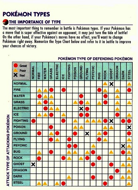 This combat chart shows type advantages and type disadvantages for certain elements in battle.