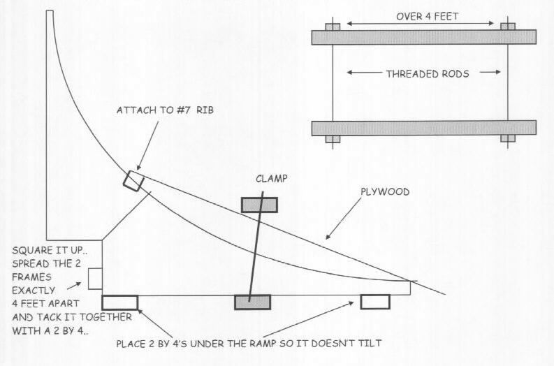 ***DISREGARD THE NOTE ON THE ABOVE DRAWING "ATTACH TO #7 RIB"*** LET SOME PLYWOOD OVERHANG OFF THE FRONT OF THE RAMP TO ALLOW FOR THE AMOUNT OF WOOD THE CURVE WILL SUCK IN.