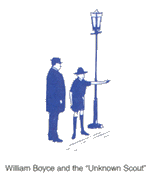 Intrigued, the publisher questioned to boy and learned more about Scouting. The boy took him to Baden-Powells office, and once there, disappeared into the fog. No one knows what happened to him. The unknown Scout was never heard from again, but he will never be forgotten. At the Scout Training Center at Gilwell Park, England, a statue of a buffalo was erected in honor of this "Unknown Scout." His Good Turn is what brought Scouting to our country.