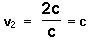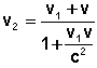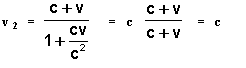 Quando v1 = c , a velocidade v2 também se torna igual a c , tal como exige o segundo postulado da teoria da relatividade . De fato,