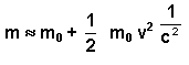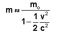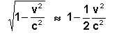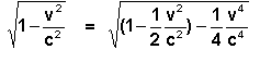 A relação entre a massa e a energia no caso de um movimento lento. É mais simples estabelecer a relação entre a massa e a energia no exemplo do movimento de um corpo com velocidade v , bastante menor do que a velocidade da luz c . Para isso, deduzamos a expressão aproximada da dependência da massa em relação à velocidade quando v << c . O denominador na fórmula ( 6) escreve-se sob a forma.