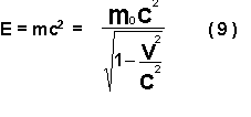 Isto significa que o incremento da massa do corpo quando aumenta a sua velocidade, é igual à energia cinética que lhe é transmitida, dividida pelo quadrado da velocidade da luz.