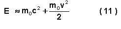 Energia de repouso. Quando a velocidade do movimento de um corpo é reduzida ( v << c) , então a fórmula ( 9 ) pode escrever-se sob a forma 1 ) :