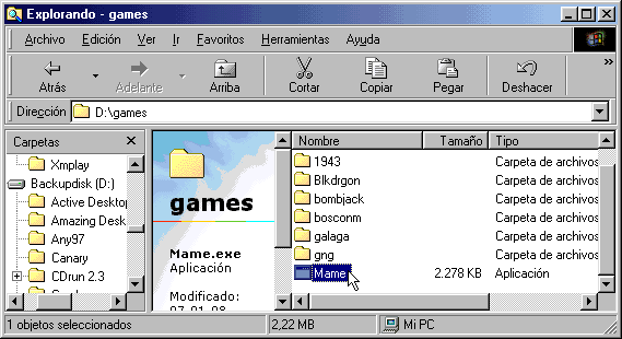 en Windows explorer debes situarte dentro de esa carpeta y ejecutar: mame, nombre