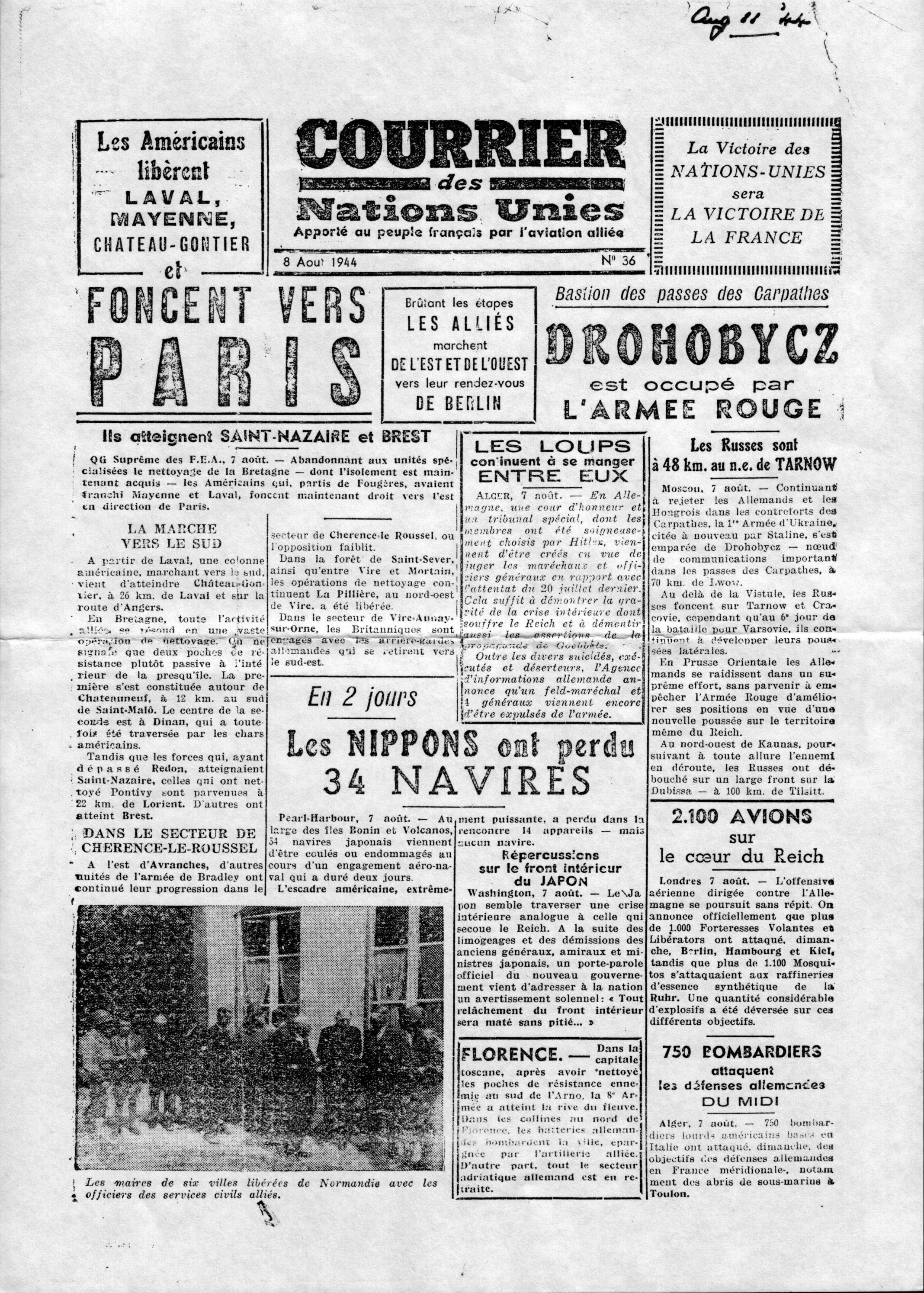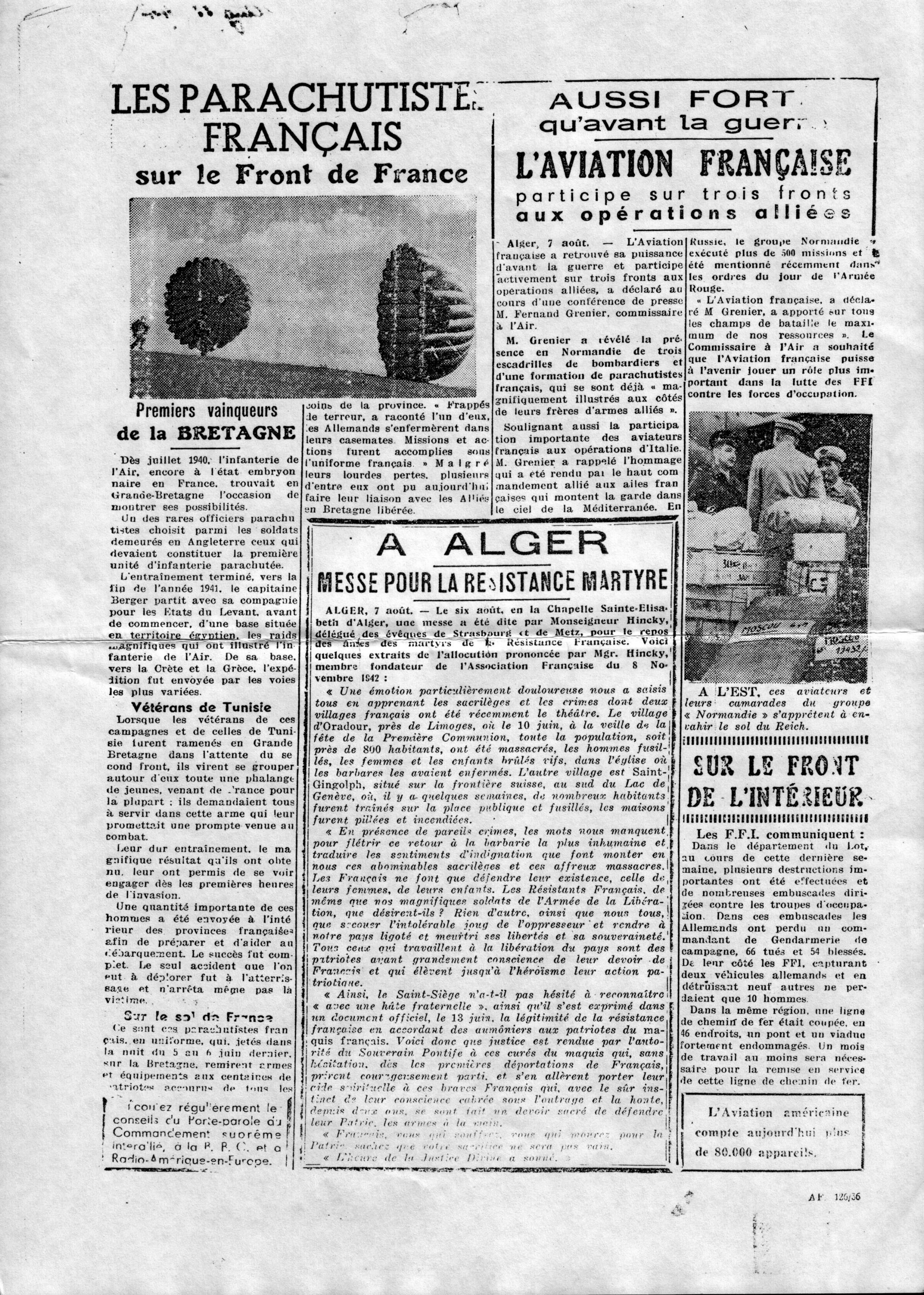 some in German. A copy of both sides of a French leaflet dropped on the 11th August 1944