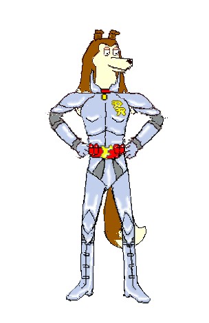 an armor spacesuit, designed for combat and modeled off the Road Rovers'
