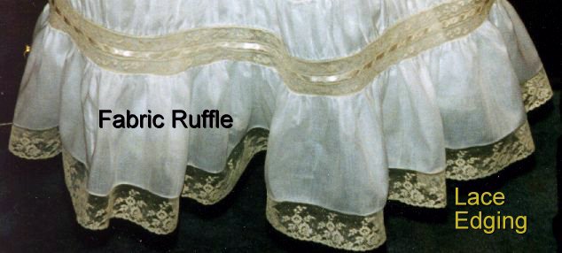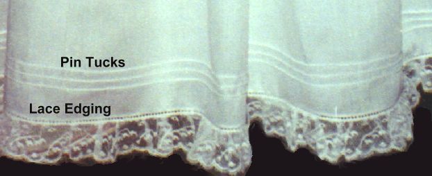 Lace edging can be added to the hem with entredeux to provide a lace ruffle as shown in the image below.