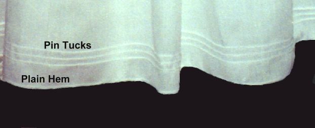 This simple gown illustrates a plain hem with three rows of pin tucks just above the hem.
