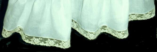 Lace edging can be added to the hem with entredeux to provide a straight lace hem as shown in the image below.