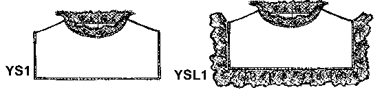 The simplest square yoke, shown as style YS1, is trimmed with entredeux. A lace ruffle can be added as shown in style YSL1.