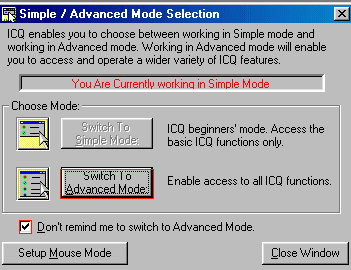 نضغط في البداية على كلمة ICQ ونختار Advance Users حتى