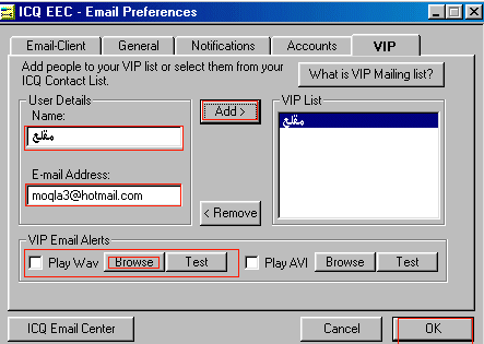 تضغط على زر ICQ وتختار كما في الصورة ..