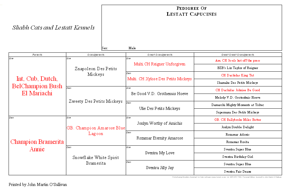 Outside Ireland Call - 00 353 63 98610 In Ireland Call 063 - 98610 e-mail: sliabhcats@hotmail.com
