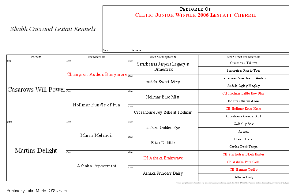 Outside Ireland Call - 00 353 63 98610 In Ireland Call 063 - 98610 e-mail: sliabhcats@hotmail.com