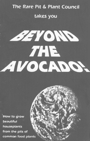 ![]() ![]() Our Publications The Pits Our bimonthly newsletter $8.00 per year ($12.00 for Canada and Europe) Please note: it was $12.50 per year ($15.00 for Canada and Europe), and please contact Marty Biesc (see below) if you already paid the higher rate for your current subscription. Beyond the Avocado Our manual that describes how to grow about 50 kinds of pits (see cover below) $3.00 + $1.00 postage ($4.00 Total) Checks for both should be made payable to: The Rare Pit & Plant Council and sent with our printable form including your name and address and which publication(s) you want to: Marty Biesc 303 E. 37th St. New York, NY 10016 Thank you.