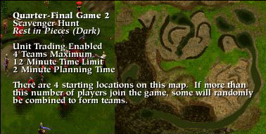 A very close match, between two equally skilled opponents! Some great Myth here, with explosions, lightning, and (my favourite) a dwarf body count in double digits. A match not to be missed; here's hoping the contestants feel the same way, even despite the OOS problems that plagued the match. The Civil Order go on to face Clan Plaid's Dwarven Brigade in the semi-finals. - Butcher