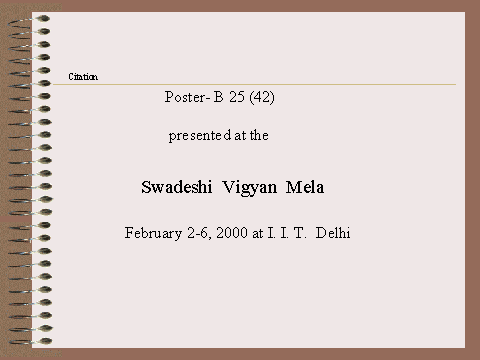 Spirulina CultivationforRural Health & EmploymentPoster presentationB25(42) (click on individual poster to read the slide & use browser "Back" to return)