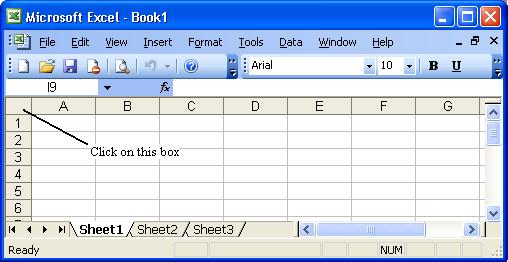- A fast way of highlighting the whole spreadsheet would be to click on