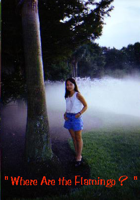My sister- Uyen posing for the camera before a cloud of mist by flamingo garden. But where have all the flamingos gone? Does she look radient in this picture? I'll let you cast the vote.