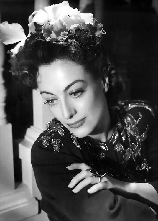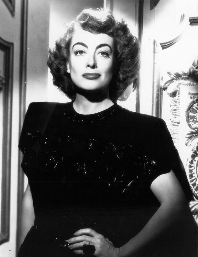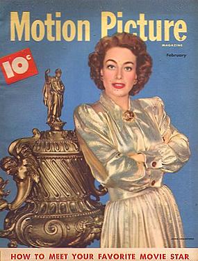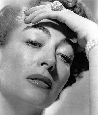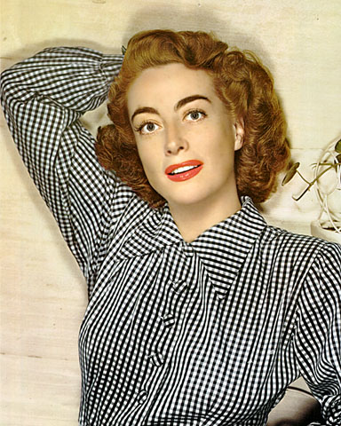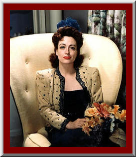 In 1940, Strange Cargo, another Gable/Crawford vehicle was received quite well. Again directed by Cukor, 1941's A Woman's Face was another major step in Crawford's comeback, but then MGM began saddling her with such poor material that she ultimately refused to continue working, resulting in a lengthy suspension. This must have been a difficult decision for Crawford given her fanatical concerns about apearances and the need to maintain the prestige of a contract with a high caliber studio like MGM. This period of uncertainty also found Joan between husbands and raising two newly adopted children, Christina and Christopher. Philip Terry, her third husband, was according to Joan, a mistake. Joan married Terry shortly after adopting her children. Joan's harsh discipline of the children was supposedly a factor in their eventual breakup. Her methods of child rearing and the exact dynamic of her relationship with her children would become a subject of bitter controversy and legend in later years. Noting that most of the best female roles at MGM were routinely going to younger actresses, Crawford was again forced to make a transition. She left MGM in 1943, after 18 years with the company. She signed on with Warners at about a third of her former salary. There Crawford only appeared briefly in 1944's Hollywood Canteen, waiting for an appropriate vehicle for her debut at the studio. She fought for the lead role in director Michael Curtiz's 1945 adaptation of the James M. Cain novel Mildred Pierce, delivering a bravura performance which won her first and only "Best Actress" Oscar. Warners, of course, quickly had a change of heart, and after the 1946 hit Humoresque the studio signed her to a new seven-year contract. Her decision to hold out for a quality script when she arrived at Warners, proved to be a very wise move. What resulted was a huge hit with Mildred Pierce, an Oscar win, as well as a rennaisaunce of her career. Crawford did some of her best work during this period, appearing in a string of well-mounted film noir classics. At Warner Brothers, Crawford was now appearing in the kinds of pictures that were routinely offered to the studio's brightest star, Bette Davis. There was a four year period that Davis and Crawford were in direct competition with each other for roles. She next appeared in 1947's Possessed, followed
