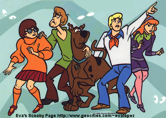 We all know them. If not by name, by face. The Braun, The Beauty, The Brains, and the Bumblers. You may know them as Fred, Daphne, Velma(not Thelma), Shaggy, and Scooby. But what about them, PERSONALLY? Get the dirt and the goods here. I've taken all the knowledge I've gathered from all Scooby Doo shows and compiled them here, in the bios page. What's Shaggy's real name? What's with Velma losing her glasses all the time? What's really going on with Fred and Daphne? Now, remember. These are my views How I see it. How I understand it to be. And also comments from my friends and stuff. So...dive into the abyss known as.........MYSTERIES INC.