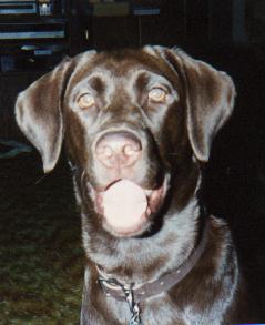 "He is your friend, your partner, your defender, your dog.You are his life, his love, his leader.He will be yours, faithful and true to the last beat of his heart.You owe it to him to be worthy of such devotion." Author Unknown Powers' Rusty Mist ~~~~~~~~~~~~~~~~~~~~ All pictures are sole property of Linda Power. I really have two hobbies. One is genealogy and the other--actually she isn't a hobby--she is THE most beautiful chocolate Labrador Retriever ever! I'm not biased or anything, you understand. It's simply the truth!! Her name is Powers' Rusty Mist and she thinks she is royalty. Actually she really is! She is an inside--outside if she wants to be--dog and very spoiled. But, in truth, her background does sport some of the most impressive bloodlines in Labradors. Her great-grandfather is even in the New Complete Book of Labrador Retrievers on pages 112-113. His name is Ginger's Chocolate August, dual Canadian/American field trials champion. There are pictures and references of many of the champions in Rusty's pedigree found in this book. Rusty was born in Yelm, Washington, on 22 December 1994. Her mother is Ebony Espresso of Cedar Pond and her father is Sir RHR Nelson. Mother, of course, is black. With a name like Ebony what else would she be? Father is chocolate - but not as pretty as Rusty. W-e-l-l-l-l! Back to the biased opinion! Rusty was one of a litter of nine puppies, six black and three chocolate. And we got the best and most beautiful of the litter. OF COURSE! Pictures of POWERS' RUSTY MIST Rusty's pedigree Breeder's Disease Poisonous Plants to Dogs Thank you for your visit. Please come back again soon.
