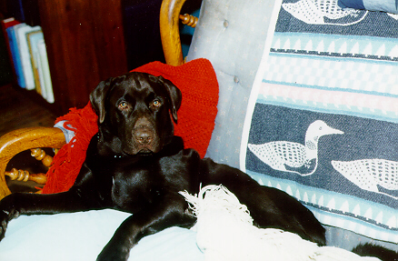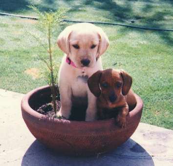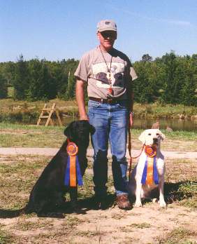 This is Dave--he's the one with only two legs, hat and hiking boots. The winners are Tj (beautiful black boy) and the gorgeous yellow beauty is Fancy. They're at a Junior Hunt Test. Here's Summer and Dolly, the doxie. Their Mom is Stacy and she sure has some funny nicknames for Summer. This is Tucker the Trucker. He took his Mom's pickup--honest and truly!! and was gonna take me for a ride. I'm still waiting, Tuck!! Tucker owns Carol More of Rusty's pals Rusty's Home Page More Rusty pictures More Rusty pictures 2 Rusty Mist's pedigree Return to and Labs click on image5>