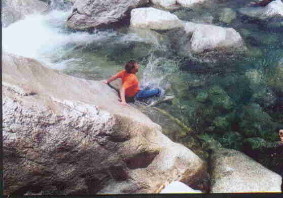 Here I am playing in the Lower Yosemite Falls. Sliding down a flood slickened rock into those cold waters. Day was so incredibly hot, yet the plunge so cold, it was a great pleasure. Thank-you, ever so much Meadow! =)