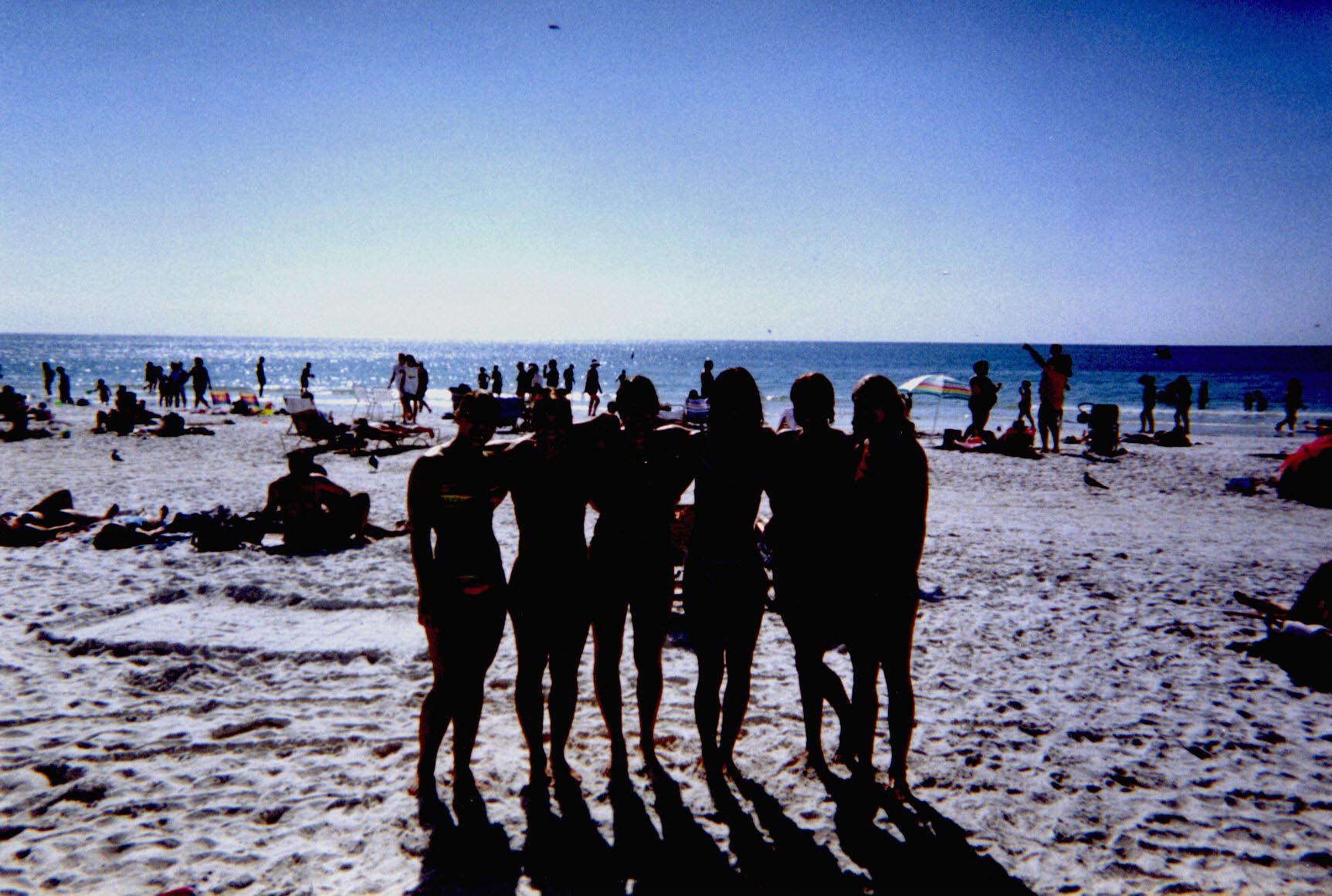 Some Butler women swimmers pose for the camera. Left to right: