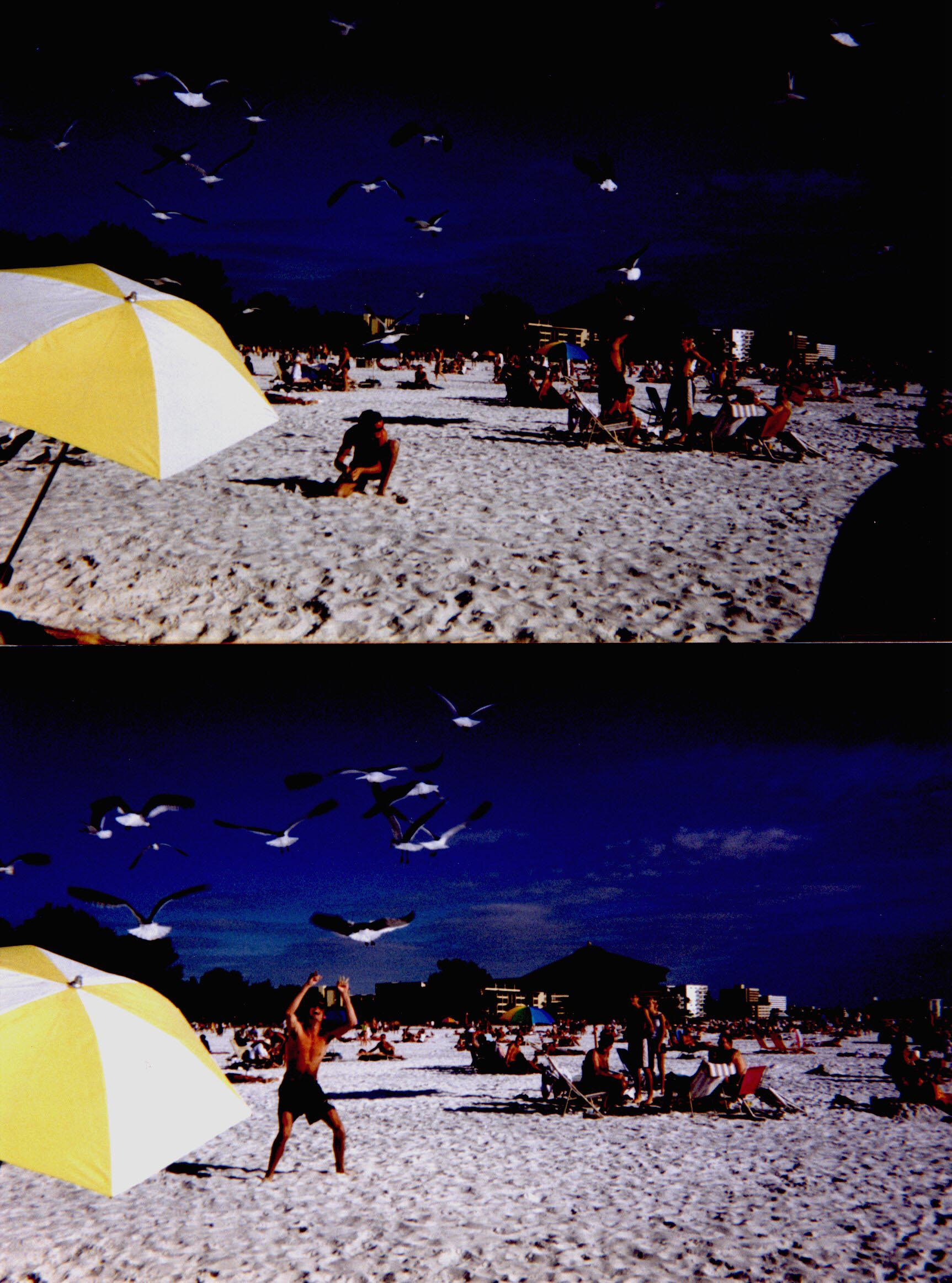 Junior Dave Scarborough took some french fries between his fingers and let the Seagulls get them from his hands. No animals or humans were harmed in the act.